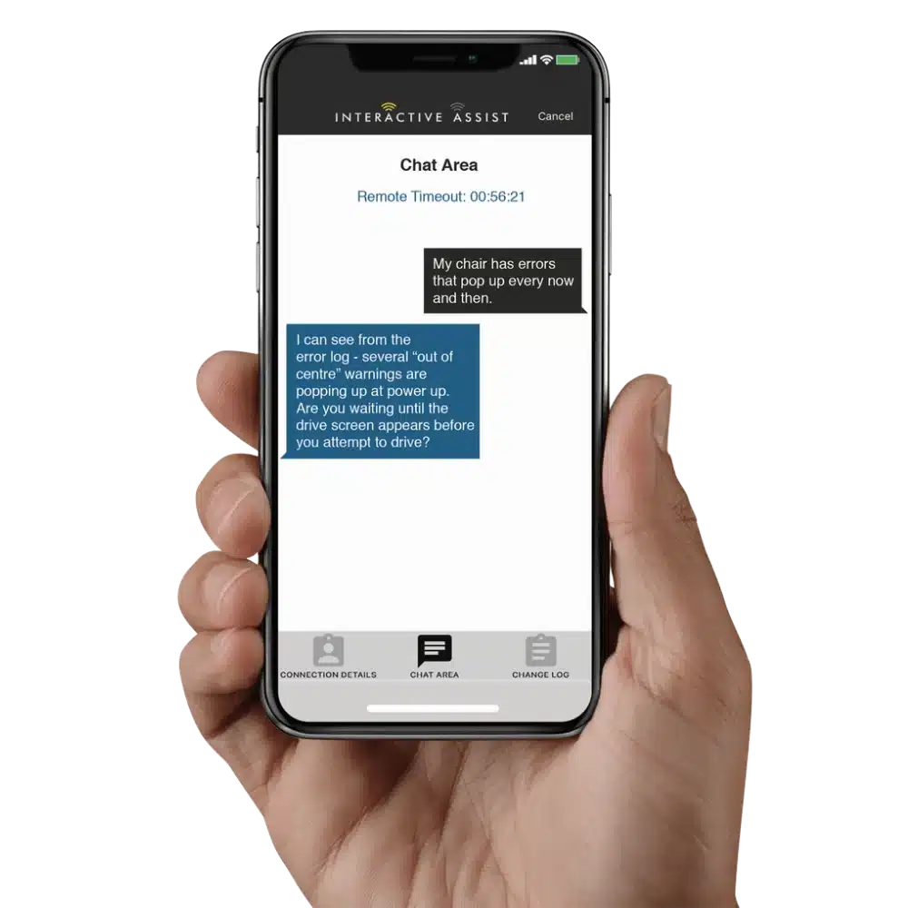 Interactive Assist from Quantum Rehab is an innovative app that provides a direct, real-time connection between a powerchair’s electronics and a provider’s programming station. It gives technicians full system and diagnostics information, including a live mirror of the powerchair’s electronics display, helping reduce service trips and streamline support. Interactive Assist is compatible with the Q-Logic 3 Advanced Drive Control System.