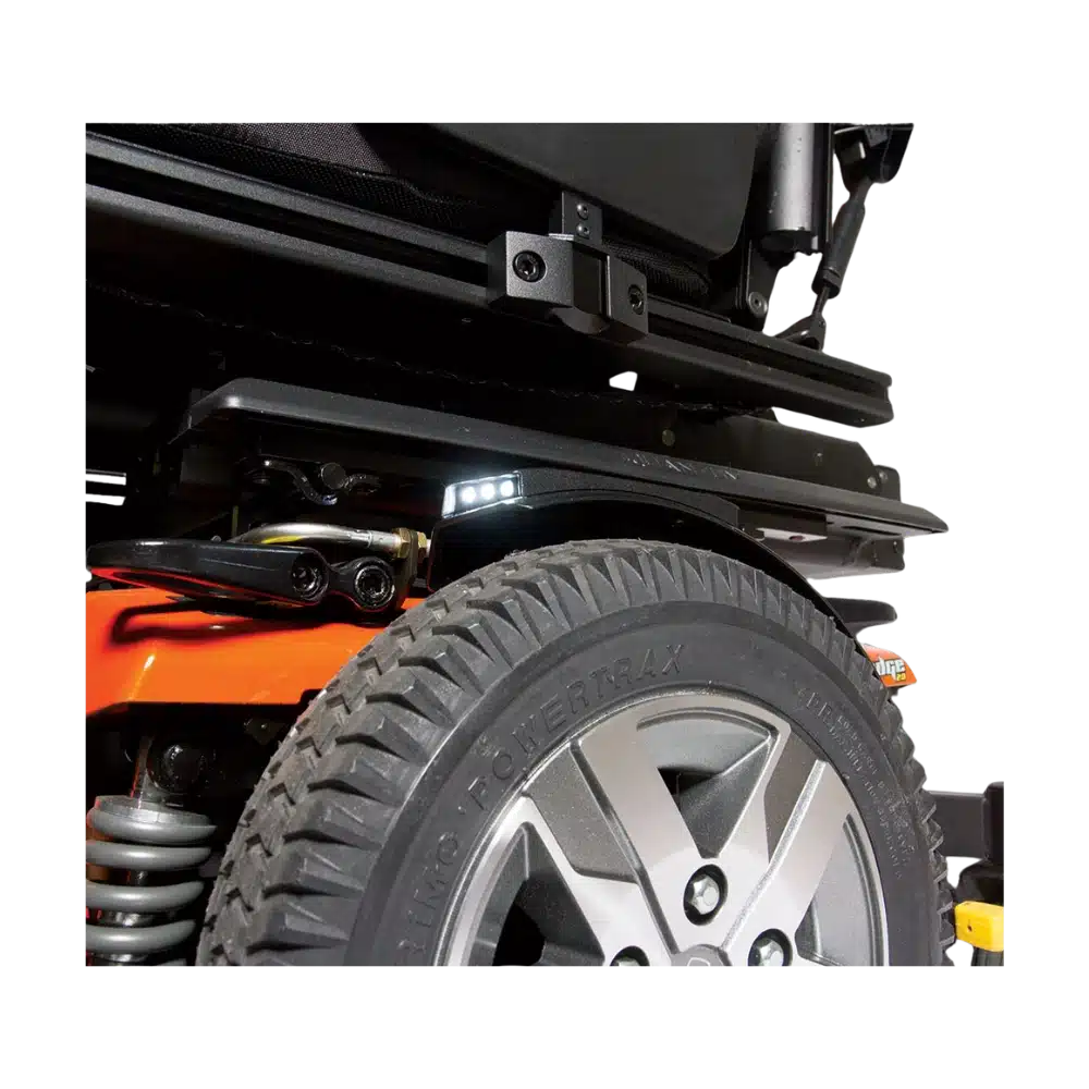 LED fender lights come standard on the Edge 3 Stretto, Edge 3, iLevel, 4Front 2, 4Front 2 HD, Q6 Edge HD, and Q6 Edge 2.0. These LED wheelchair lights offer great benefits and features for increased visibility. With lighting mounted to the fender, above the drive tire on each side of the power wheelchair, fender lights help ensure that you can see and be seen.